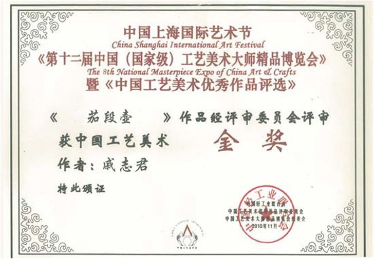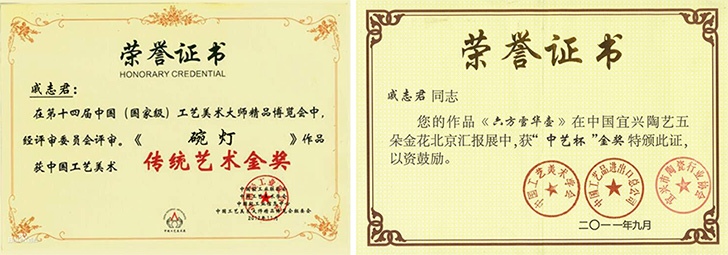 中国工艺美术师、优秀青年陶艺家、中国工艺美术学会会员、宜兴市紫砂行业协会会员。