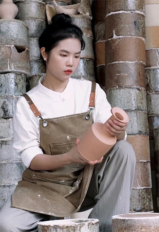 出生于2003年,从小在窑边长大的她,自幼对龙泉青瓷的制作耳濡目染。15岁起跟随爷爷金品老艺人和多名制瓷前辈学习制瓷和古龙窑烧制技艺。五年的专业学习,以传统技法融入现代审美。