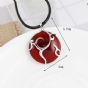 该款吊坠玛瑙为天然红玛瑙,古称“赤玉”,是佛教七宝之一。色泽含蓄醇厚,质地温润光亮,透明度不高(否则已至水晶界线),透光看有的能见自然水线或“云彩”“丝絮”。玛瑙内含于镀白金的925纯银之中,镀白金的工艺能够使得925纯银持久亮泽,并具有防氧化、防过敏的功效。