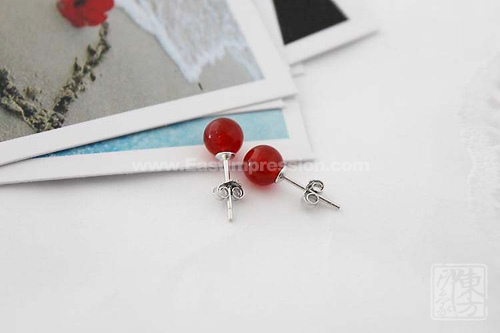 925纯银镀白金中国红玛瑙耳钉-一点红