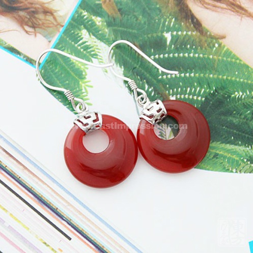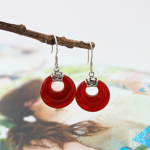 925纯银镀白金中国红玛瑙耳坠-圆满