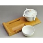茶壶:口内径6 cm,外径11cm,高7.8cm;茶杯:口径7.5cm,高 4cm;底座:长24.5×宽10.7×高2.2cm