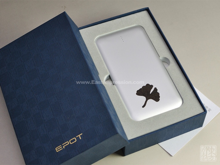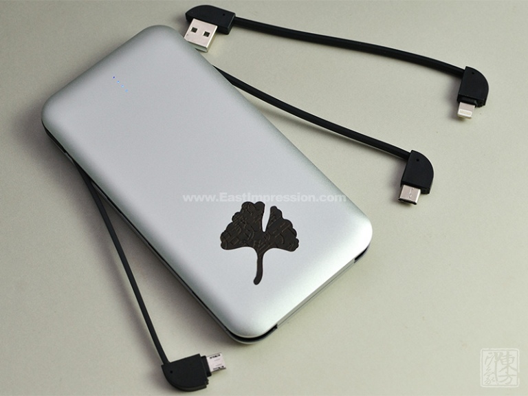 该款充电宝以航空铝为材质制成全金属外壳,罗边工艺,正面以镶嵌工艺嵌入紫光檀精雕的《论语•卫灵公》名言:“君子义以为质,礼以行之”。精雕位置呈优美的银杏叶状,犹如画龙点睛,时尚银亮丽华贵的金属质感与紫光檀红木的古朴厚重感形成鲜明的反差,将现代感的商务气质与古典的文化元素有机融合,细节处彰显韵味、品位。