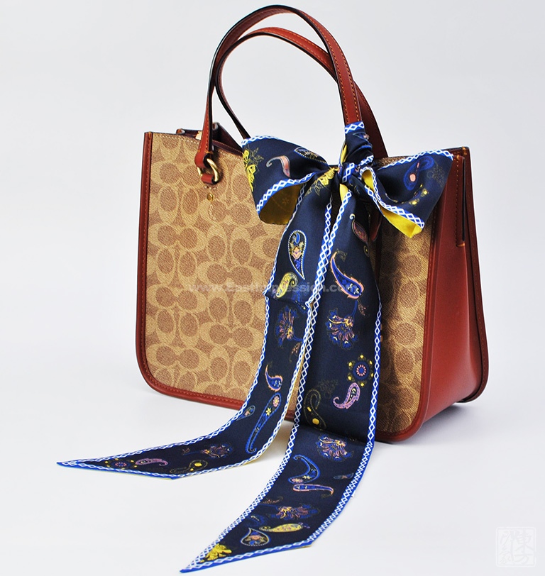丝巾面料为12姆米真丝斜纹绸,具有明显的斜向纹路,面料挺括,不易起皱,容易塑造出各种时尚造型。丝巾图案采用先进的数码喷印技术,花型层次过渡自然,色彩更加丰富饱满。整齐严密的双层内缝边服帖美观,丝巾展现出漂亮流畅的直线条。