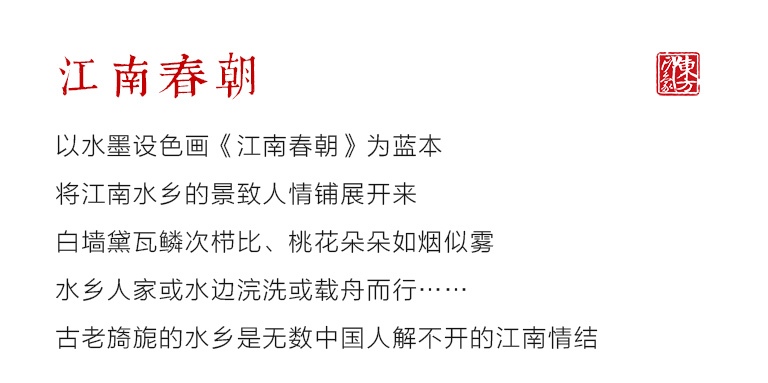 这是现代画家宋文治创作于1962年3月的一幅纸本水墨设色画,也是他早期江南山水画中最成功的作品之一。作品以苏州水乡典型的黑瓦白墙建筑为素材,用轻松的笔调写出桃花朵朵,点染出一派春暖花浓之景象,使得江南温润柔和的气息扑面而来,给人以古朴温馨的无限遐想。