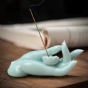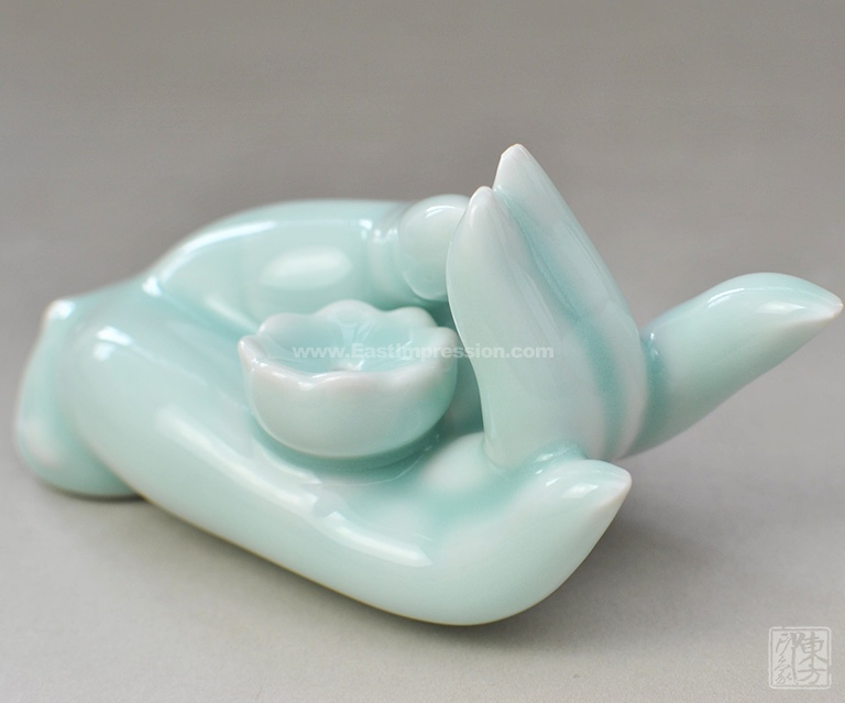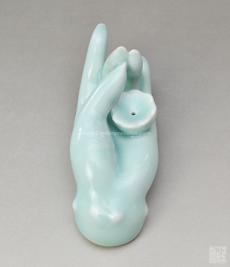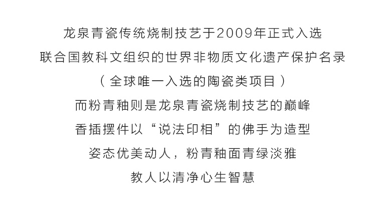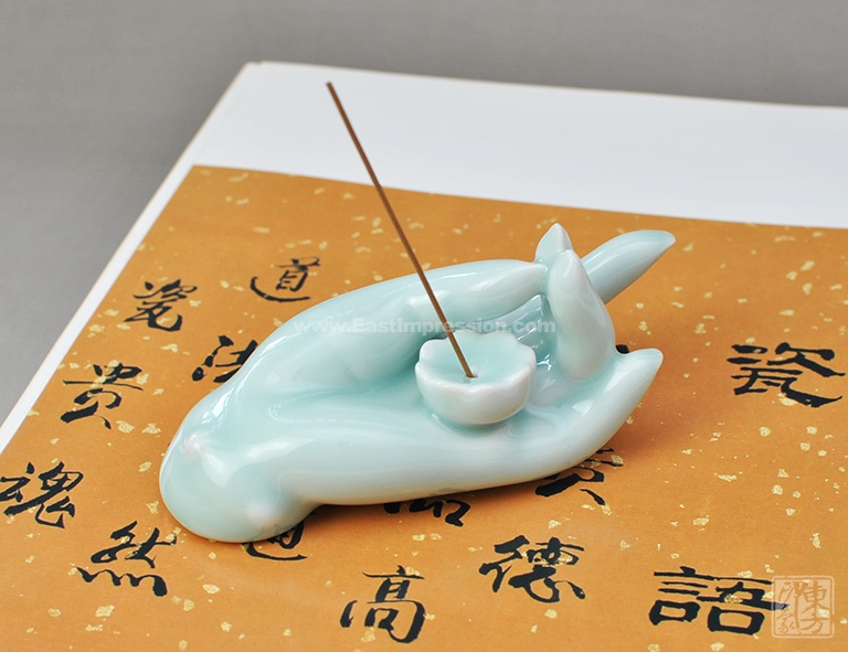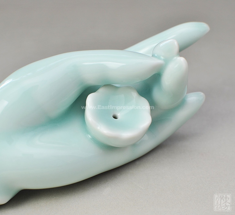 一直以来对龙泉青瓷各种釉色、各种制品喜欢得无法自拔,佛手形态优美,釉色温润,看着有种能让我平和的魔力,让插香也变成一种美的享受。