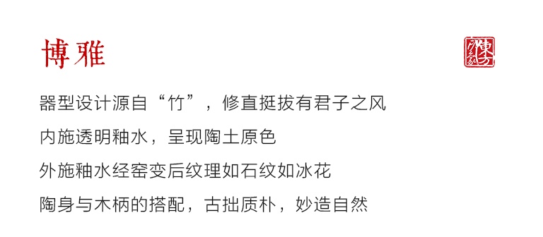 器型设计源自“竹”,修直挺拔有君子之风。