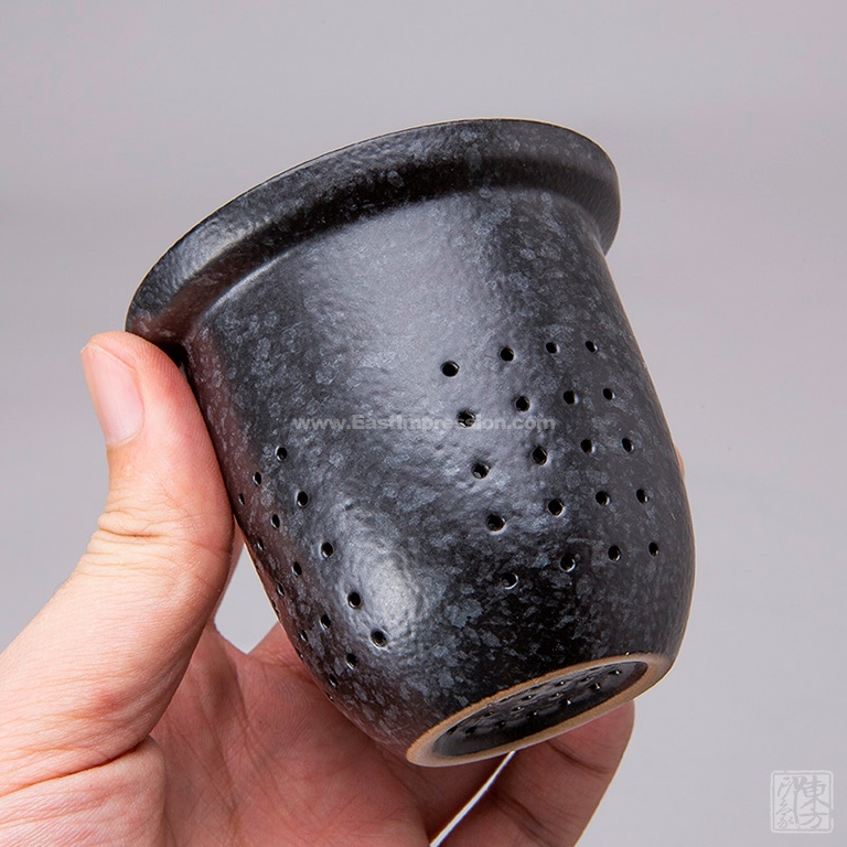 内施透明釉水,呈现陶土原色;外施釉水经窑变后纹理如石纹如冰花。