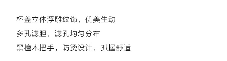 黑檀木把手,防烫设计,抓握舒适。