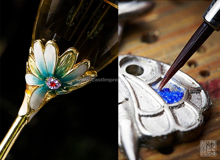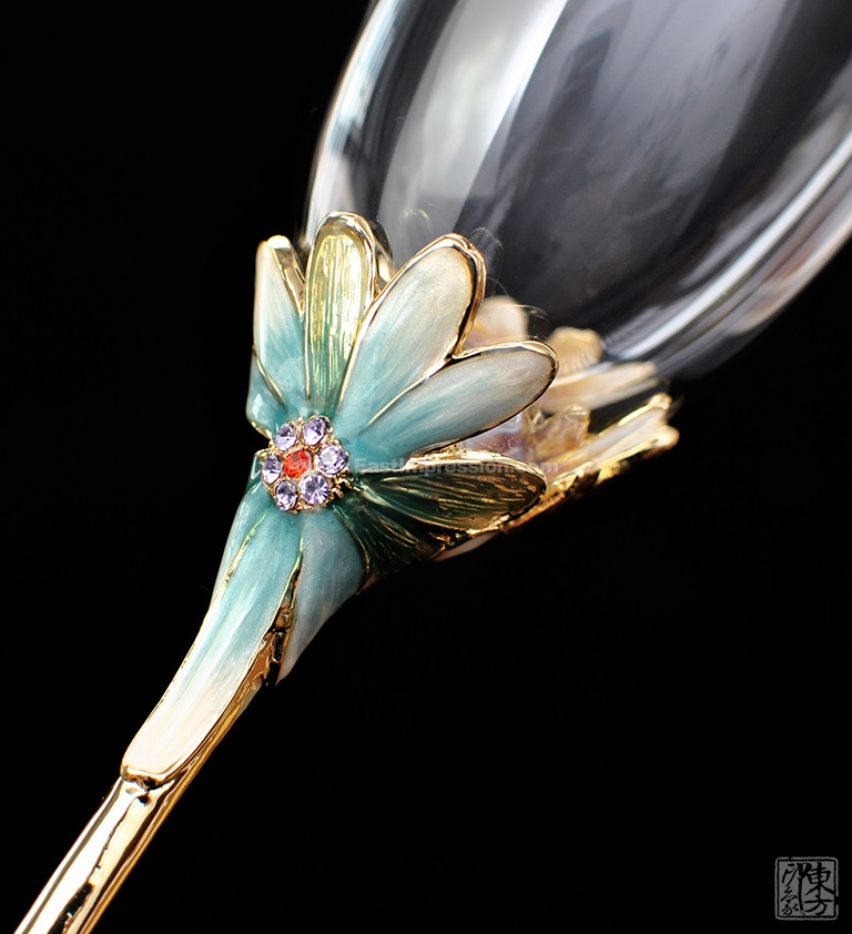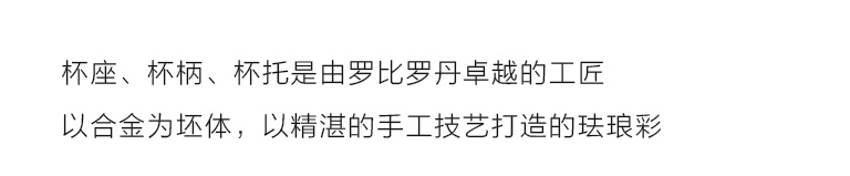 杯座、杯柄、杯托是由罗比罗丹卓越的工匠以合金为坯体,以精湛的手工技艺打造的珐琅彩。