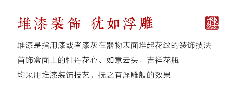 平遥推光漆器手工堆漆彩绘首饰盒:金莲生辉