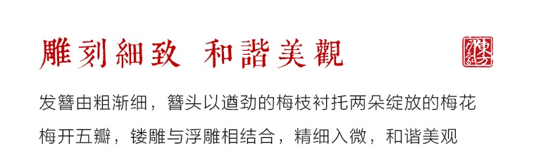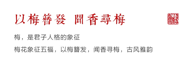 梅,是君子人格的象征。梅花象征五福,以梅簪发,闻香寻梅,古风雅韵。