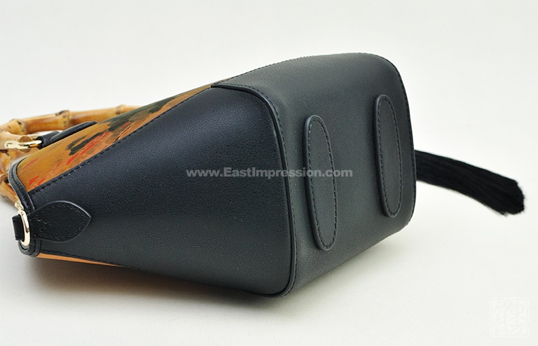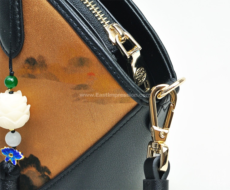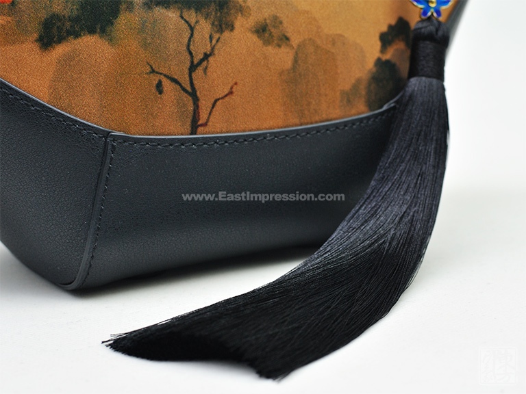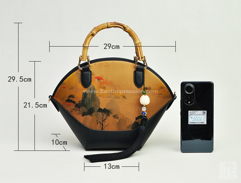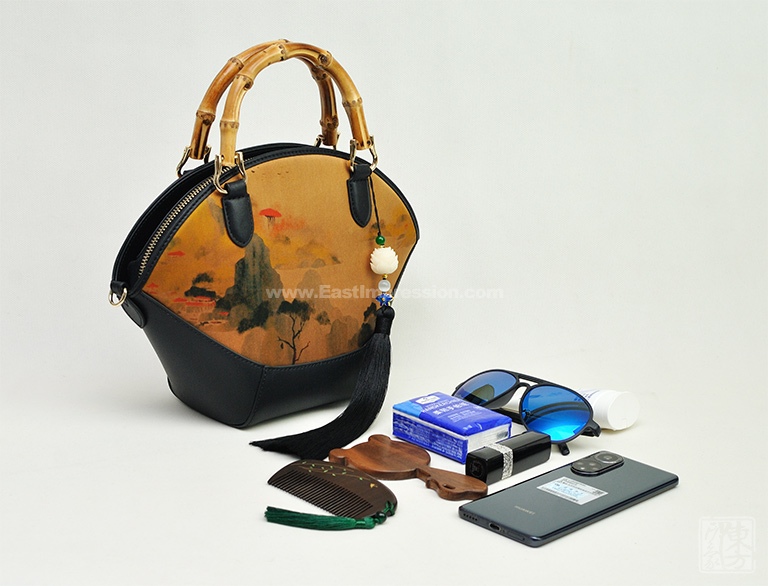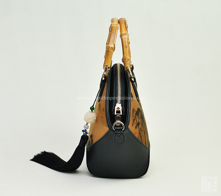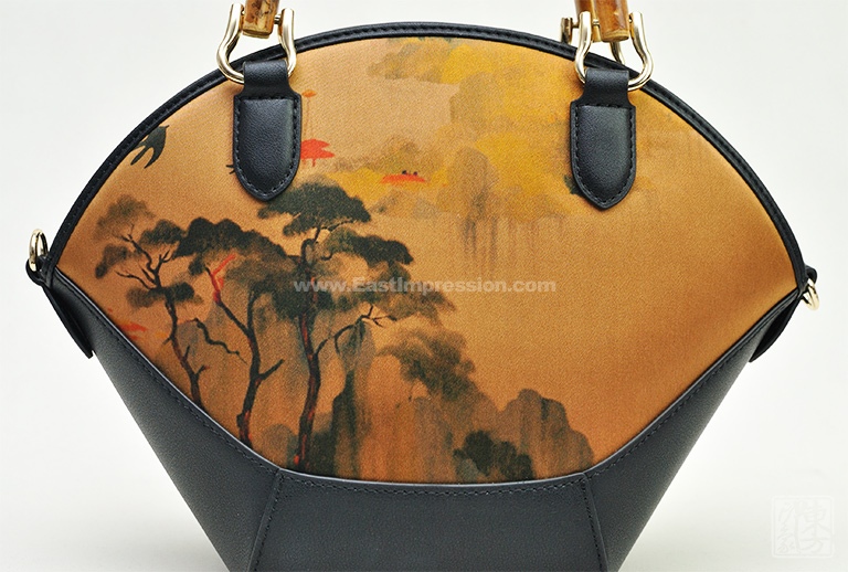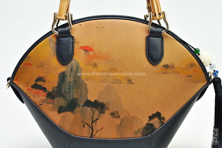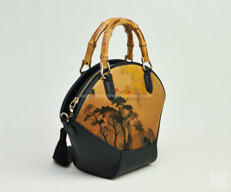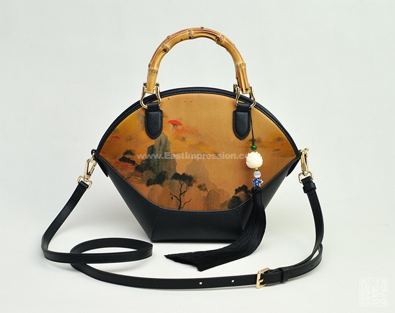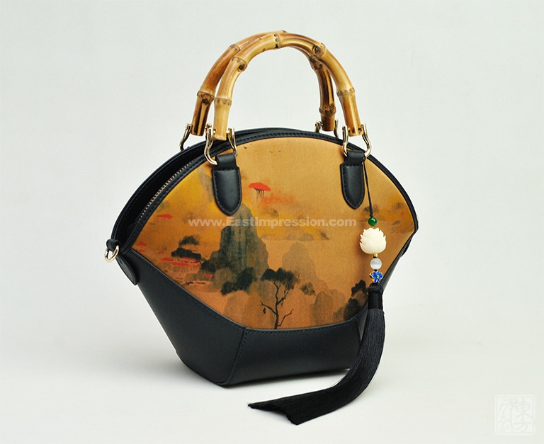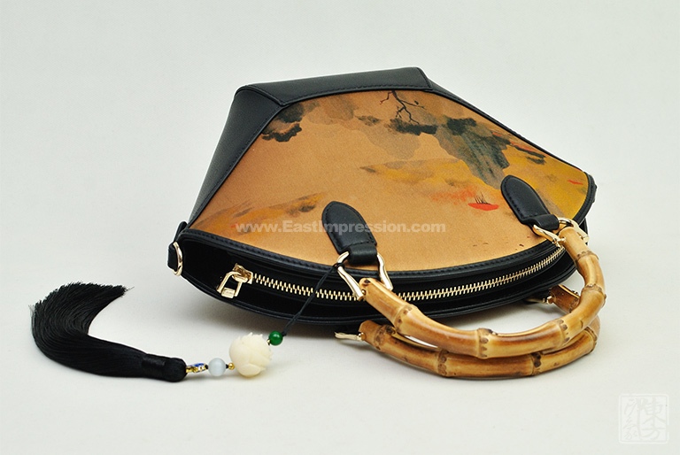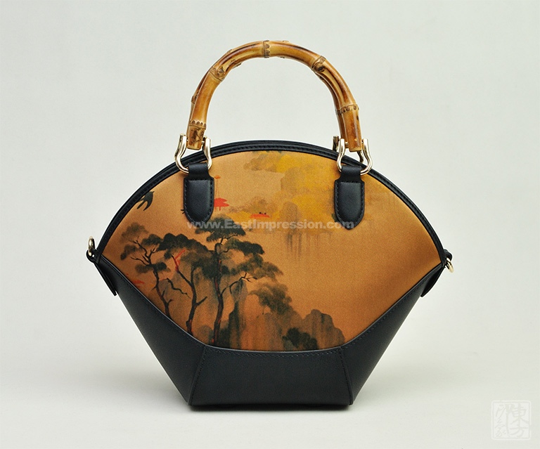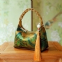真丝香云纱印花背提包:绿绮翠微