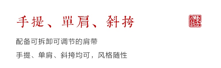 配备可拆卸可调节的肩带,手提、单肩、斜挎均可,风格随性。