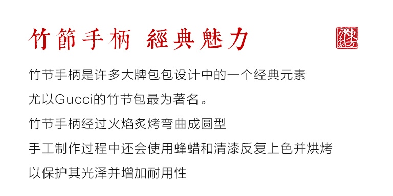 竹节手柄是许多大牌包包设计中的一个经典元素,尤以Gucci的竹节包最为著名。