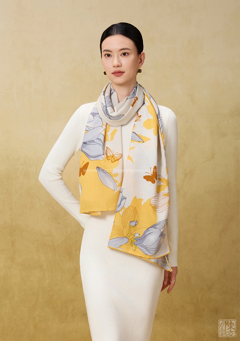 绵羊毛桑蚕丝混纺秋冬款围巾披肩:如花绽放
