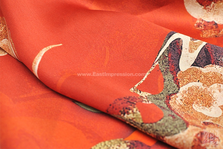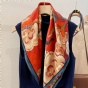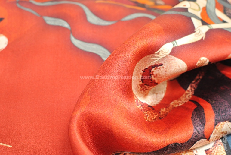 丝巾面料为12姆米真丝素绉缎,散发出自然柔和的丝绸光泽,表面平整光洁,触感细腻丝滑。