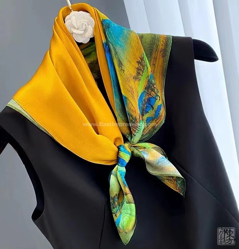 100%桑蚕丝/真丝斜纹绸丝巾:谷雨(中方巾)