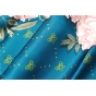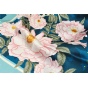 以孔雀蓝为主色调,以《八花图》之“月季”装饰,粉白花朵清雅娇嫩,茂密枝叶清爽精微。