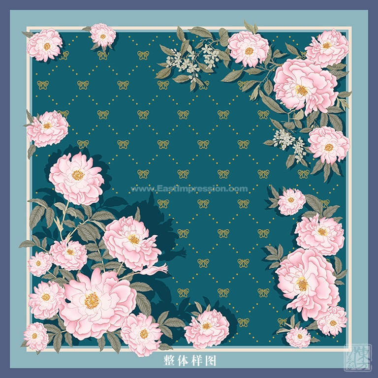 100%桑蚕丝/真丝斜纹绸丝巾:谷雨(中方巾)