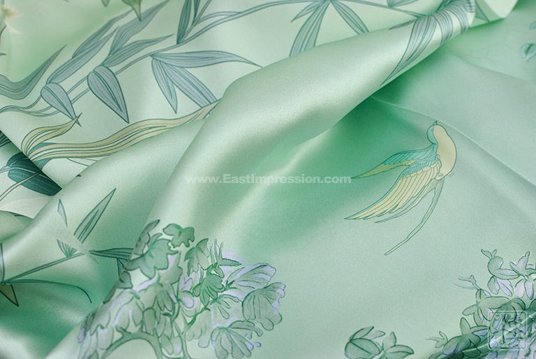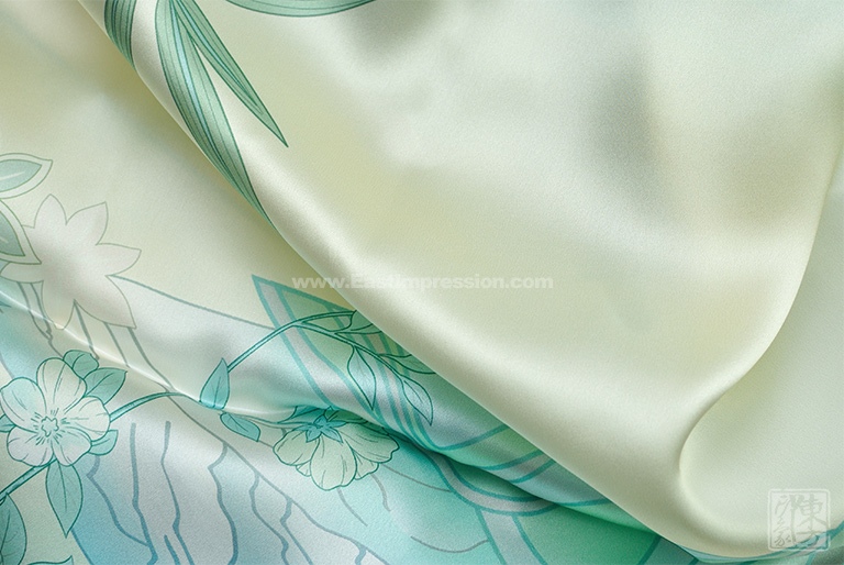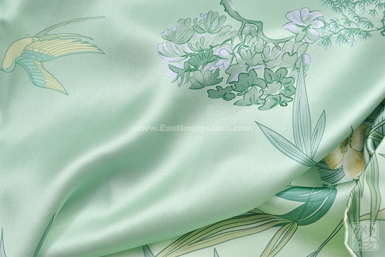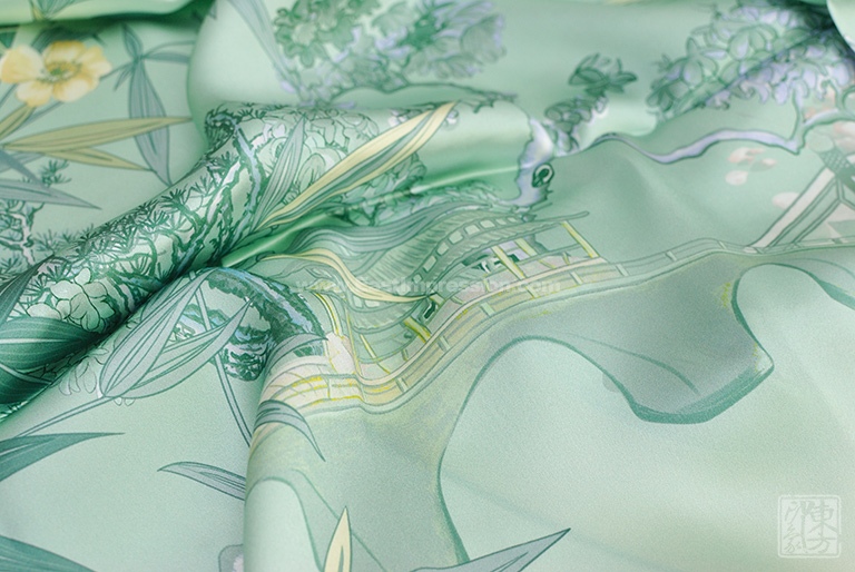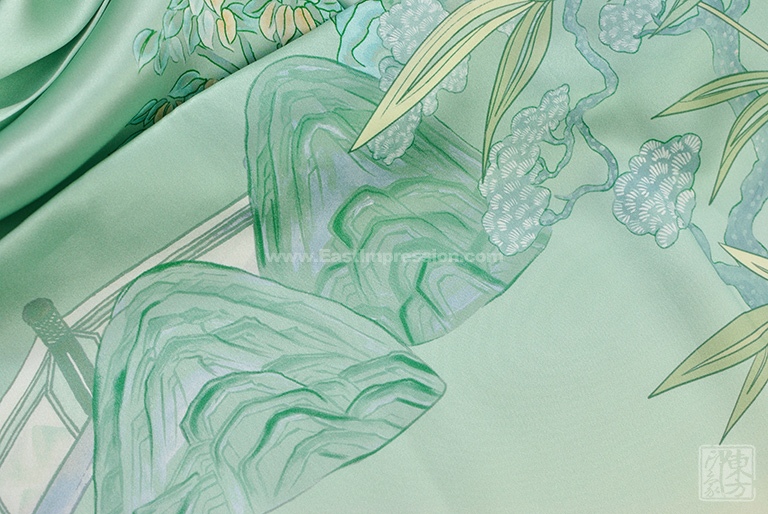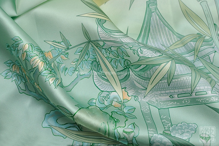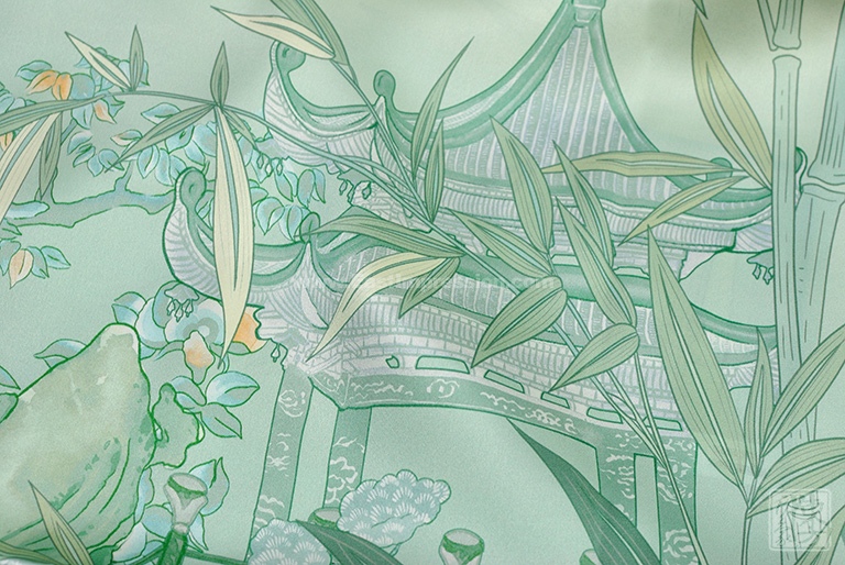 “竹初生之时,色苍筤,取其春生之美也”。以苍筤为丝巾的主色调,可谓相得益彰。中国传统色从天地万物衍生而来,气韵雅致,美不胜收。