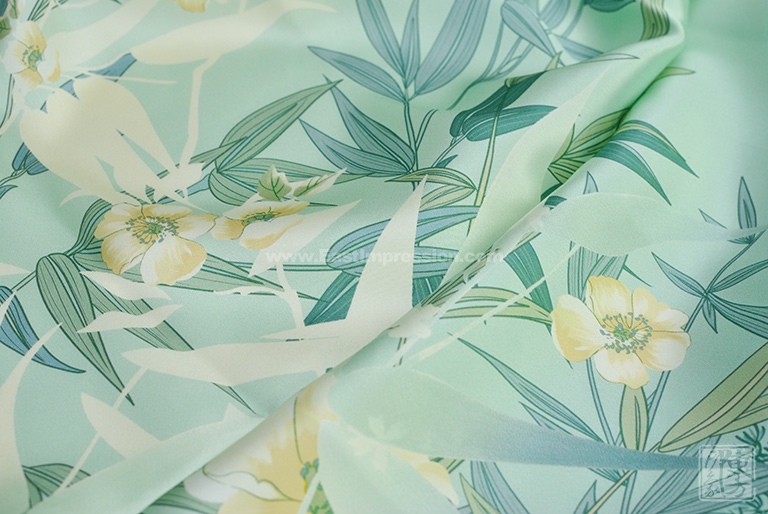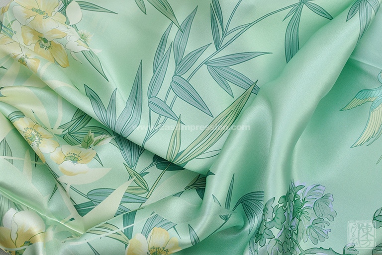 真丝面料是纯桑蚕白织丝织物,采用斜纹组织编制。根据织物平方米重量,分为薄型和中型。根据后加工不同分为染色、印花两种。它的质地柔软光滑,手感柔和、轻盈,花色丰富多彩,穿着凉爽舒适。主要用作夏令衬衫、睡衣、连衣裙面料及头巾等等。