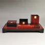 红酸枝浮雕镂空办公三件套-底座、笔筒、名片盒