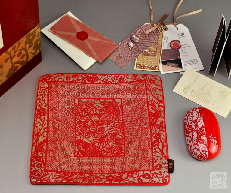 [团购]中国剪纸喜上眉梢·办公两件套-真丝织锦鼠标垫、无线鼠标