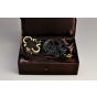 乌木(阴沉木)兼备木的古雅和石的神韵,有“东方神木”和“植物木乃伊”之称。由地震、洪水、泥石流将地上植物生物等全部埋入古河床等低洼处。埋入淤泥中的部分树木,在缺氧、高压状态下,细菌等微生物的作用下,经长达成千上万年炭化过程形成乌木,故又称“炭化木”。乌木是不可再生的文化资源,因其无比珍贵,兼具安魂定魄、驱凶避邪、招财进宝、镇宅、镇店之神功,乌木艺术品是精妙绝伦的稀世珍宝,历代皆为贡献皇宫之贡品,古人言:“家有乌木半方,胜过财宝一箱”。它以其独特的方式,在生死历程之中承受了大自然鬼斧神工的精雕细琢,使之一形一态,无不穷揽天物,一神一奇,无不幻化玄妙,一怪一异,无不倾绝想象。