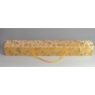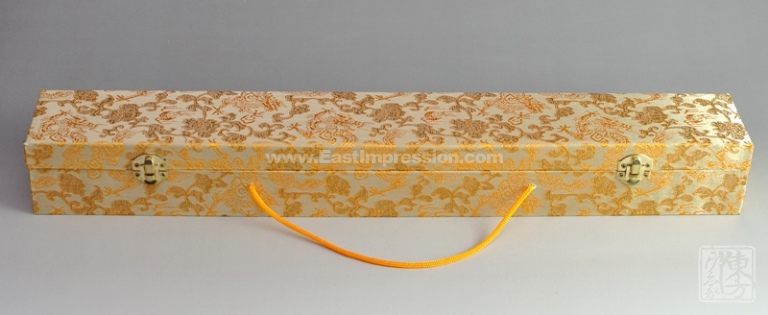 此款云锦卷轴是以100%桑蚕丝为经,金丝线为纬,用长五点六米,宽一点四米,高四米的传统大花楼木织机,由拽花工和织手两人相互配合手工操作织造出来的。织机由一九二四个机件组成,“拽花工”坐在织机上层,负责提升经线,“织手”坐在机下,负责织纬,妆金敷彩。每天产量约为五公分,所以弥足珍贵。