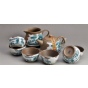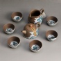 半陶釉万寿高脚杯茶壶套装-开片古陶
