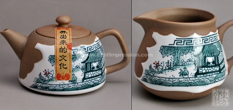 3、看:比较套件中同一类制品,比如茶具5件套中花面同样的杯子,虽然花面上在原则上是一样的,但是手绘的却不可能做到完全一样,甚至是明显的不一样,观察得稍微仔细一些就能很容易看出复制和人工的区别了;另外贴花有时会出现图形叠交、错位、接头缺口三种状况,这是因为有些大的整体性花面是需要拼接上去的。