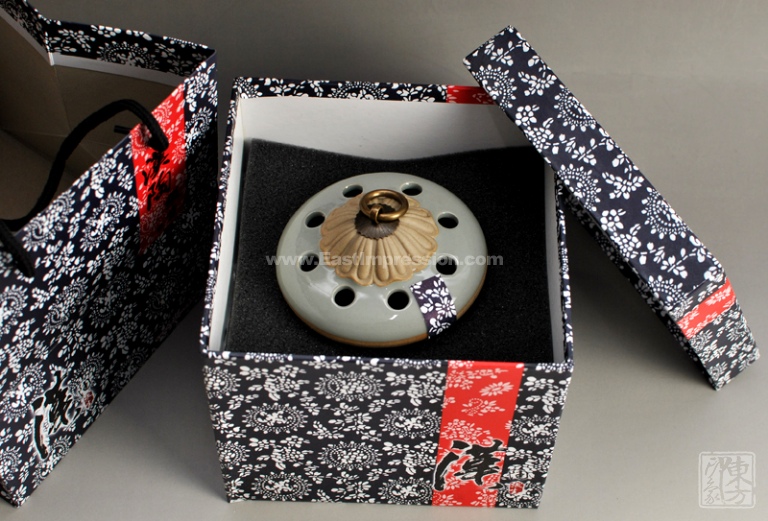 从古至今我国遂有“茶经香传”之称,品茗与焚香一起成了中国传统文化的组成部分。炉香袅袅,既馨且逸。尘里偷闲,静中成友。晴窗拓帖,篝灯夜读,又或红袖在侧,密语私谈,焚香以熏心热意。助情伴月者也。香炉盖顶与炉身的香孔适合香气四溢弥散,燃起一盘檀香,那股馨香慢慢从香孔中浸出,心境也随之平和起来。更是敬神礼佛、禅坐、品茗、伴读及修行之佳品。