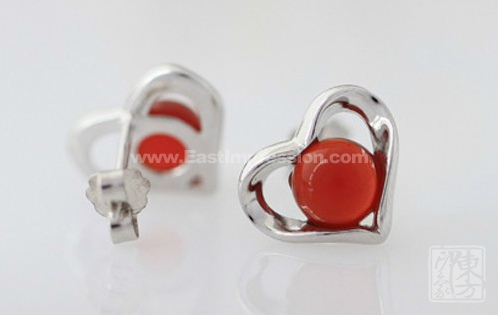 [团购]925纯银镀白金中国红玛瑙耳钉-珠玉在心