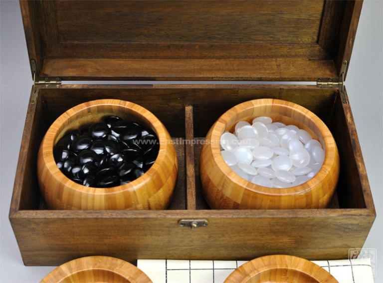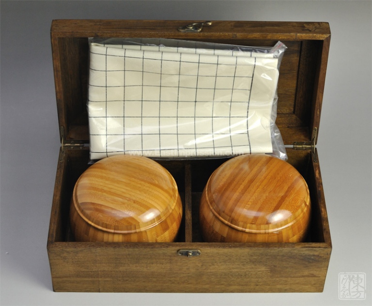 该套围棋的黑白棋子为天然玛瑙。色彩纯正柔和,纹路流畅清晰,可见自然水线或“云彩”,光泽度和透明度好,触感光滑细腻,温润可人。放置黑白子的棋盒为竹制。礼盒以香樟木制成。香樟木生长期缓慢,是传统的稀有名贵木材。香樟木能够散发出特殊的浓郁的香气,经年持久不衰。物品放入其中,不但不虫不蠹不发霉,而且气味芳香、沁人心脾。