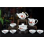 醴陵釉下五彩手绘茶具八件套-莲年有鱼