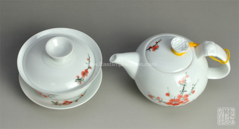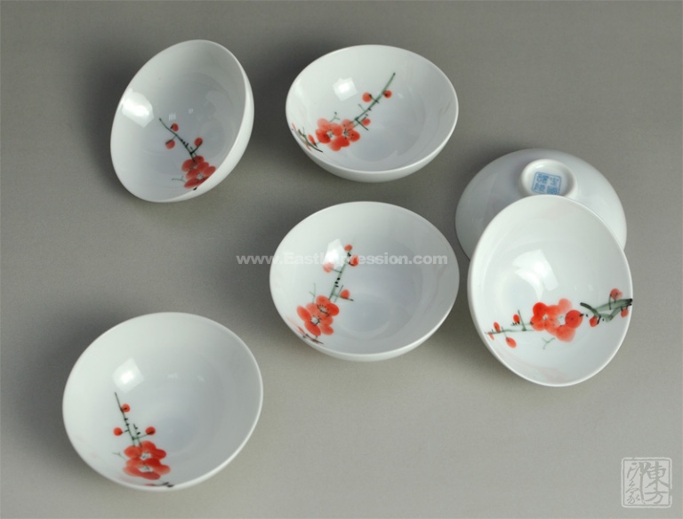 挺不错的茶具,真是白如雪,润如玉,薄如纸,声如.....呵呵!没舍得敲.只因自己没注意买了个功夫茶壶。北方人喜用大一点的壶,不过没关系,咱也学学喝功夫茶。