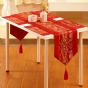 仿手工妆花云锦桌旗套装-中国红如意双鱼