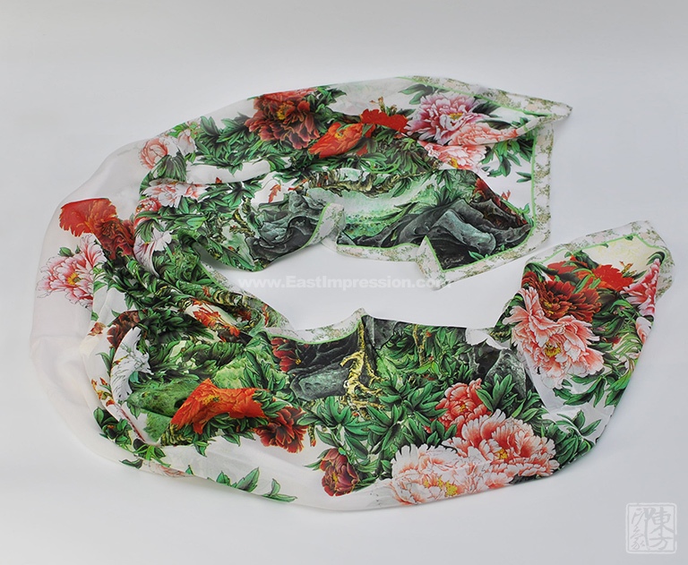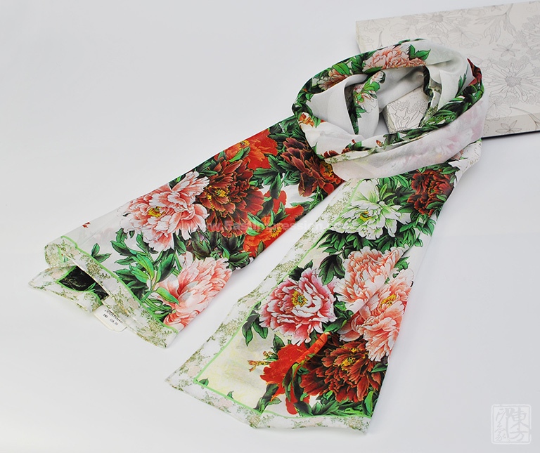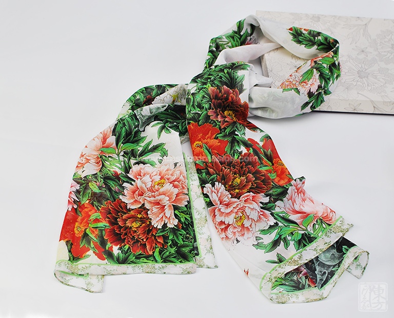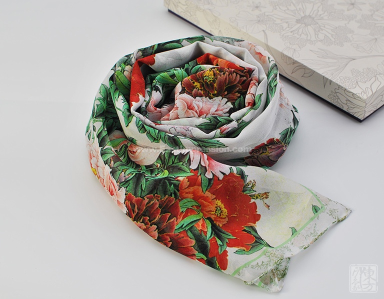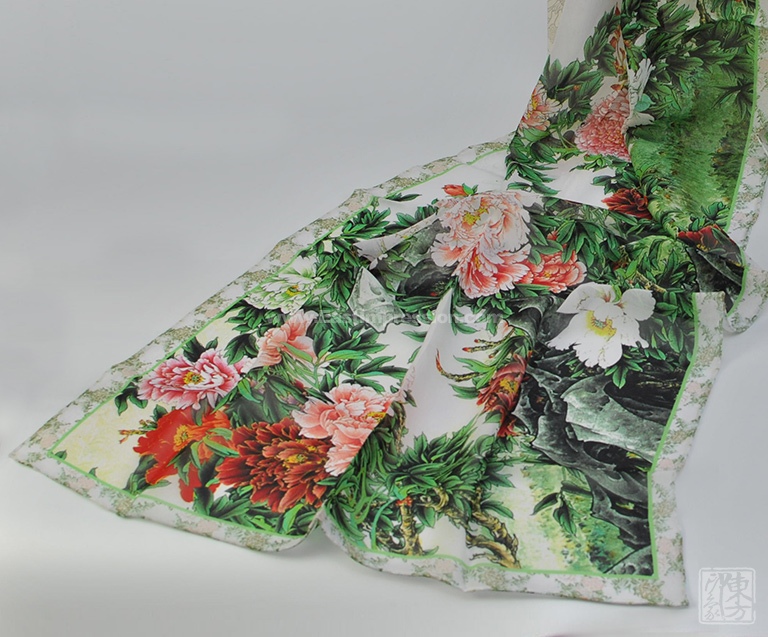 100%桑蚕丝/真丝素绉缎丝巾长巾:木兰花开