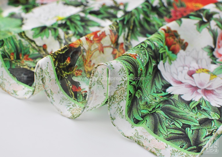 真丝面料是纯桑蚕白织丝织物,采用斜纹组织编制。根据织物平方米重量,分为薄型和中型。根据后加工不同分为染色、印花两种。它的质地柔软光滑,手感柔和、轻盈,花色丰富多彩,穿着凉爽舒适。主要用作夏令衬衫、睡衣、连衣裙面料及头巾等等。