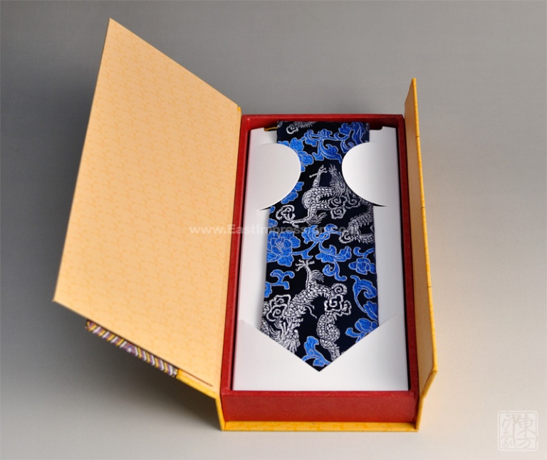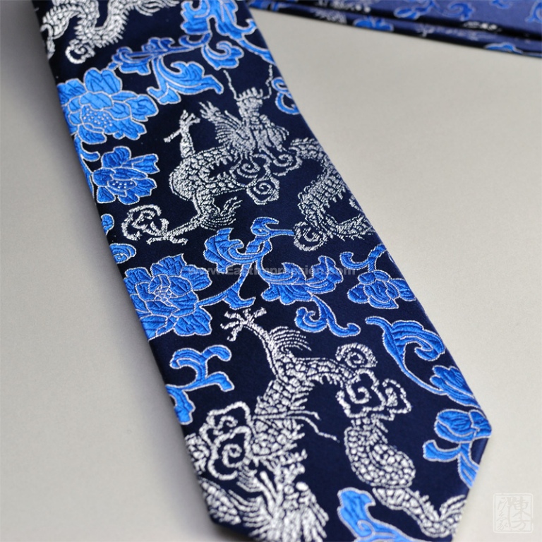 100%桑蚕丝精品云锦领带-藏蓝色祥龙牡丹