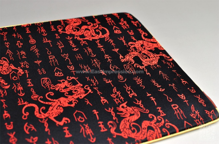 真丝织锦鼠标垫-明黄色祥龙牡丹图