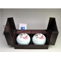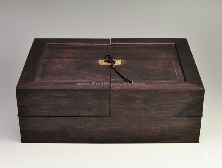 礼盒以香樟木制成,对开门结构。香樟木生长期缓慢,是传统的稀有名贵木材。香樟木能够散发出特殊的浓郁的香气,经年持久不衰。物品放入其中,不但不虫不蠹不发霉,而且气味芳香、沁人心脾。