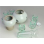 材质采取了炻瓷与玻璃的结合,炻瓷质感粗犷纯朴,手工烧制的玻璃剔透滑腻,两者相结合形成一种互补的对比触感。