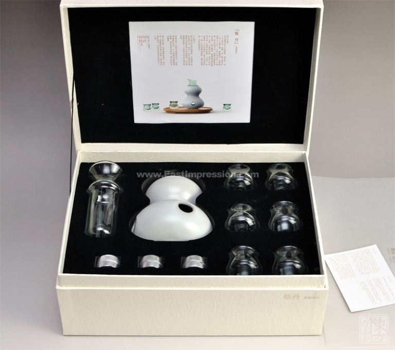 葫芦炼丹炉变温酒具,它可以通过放置蜡烛加热或者加入冰水降温,从而控制酒的温度,以适应不同天气、场合的使用。葫芦是传统的辟邪纳福之宝,谐音“福禄”,以此为型传递默默的守候与美好的祝愿。