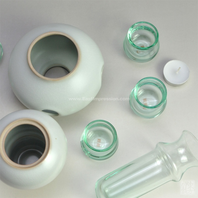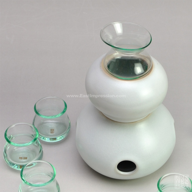 龙泉青瓷温酒壶+酒杯:“一品福禄”宝葫芦