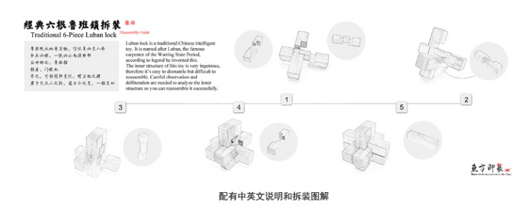 鲁班锁,这种三维的拼插器具内部的凹凸部分(即榫卯结构)啮合,十分巧妙,外观看是严丝合缝的十字立方体。一般都是易拆难装,拼装时需要仔细观察,认真思考,分析其内部结构,不得要领,很难完成拼合。