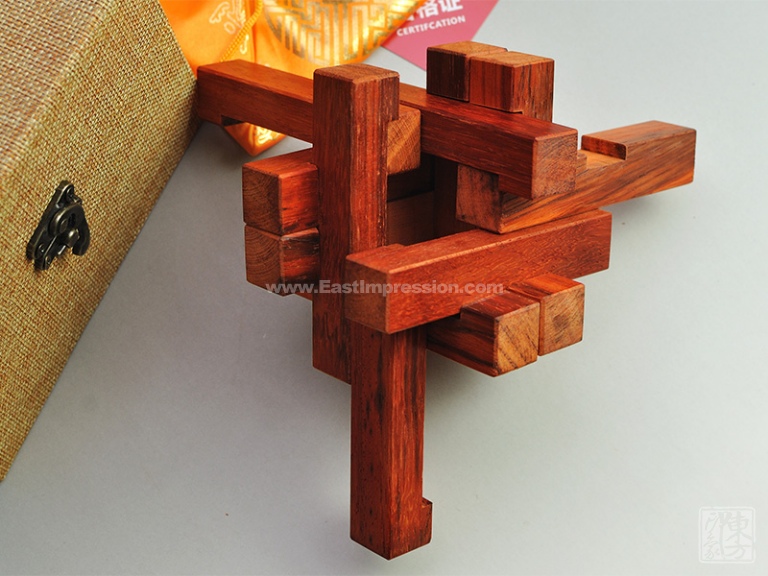 该款鲁班锁材质为红花梨(绍氏紫檀)大乔木,产地热带西非、非洲东部,木材耐久性极佳,尤其心材很耐久,不易受小囊虫之危害。木材花纹美观,木纹细腻,油质感强,强度高,近年来深受广大红木收藏爱好者喜爱。