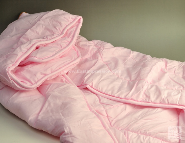 外套采用丝绸布料,质感烟丝醉软,色泽亮丽,手感光滑。内芯是进口丝绒纤维,柔软舒适,手感良好,且长期使用后不会互相缠结,蓬松性良好。由于内芯丝绒纤维纤细致密,所以具有很好的保暖防寒的功效。