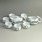 豆青釉阴雕玉脂瓷茶具套装:宾客盈门